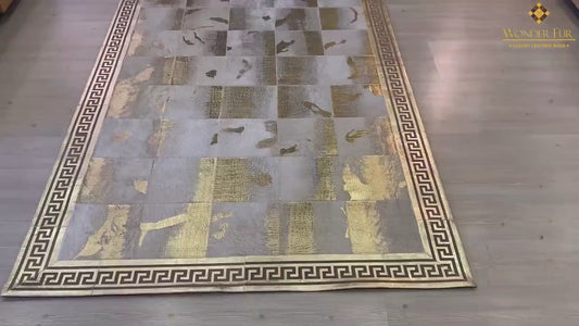 Shiny Gold Patchwork Rug, Handmade Natural Cowhide Area 4x6 Rug, Cow Skin Carpet for Home Décor