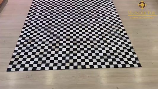 Black and White Cowhide Patchwork Rug – 100% Natural Handmade Cowhide Area Rug