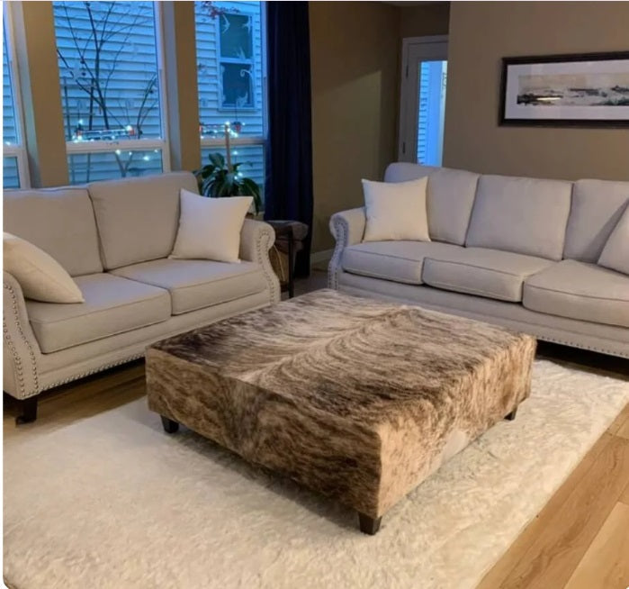 Luxury Ottoman, Natural Cowhide Ottoman for Living Room - Custom Colour & Legs