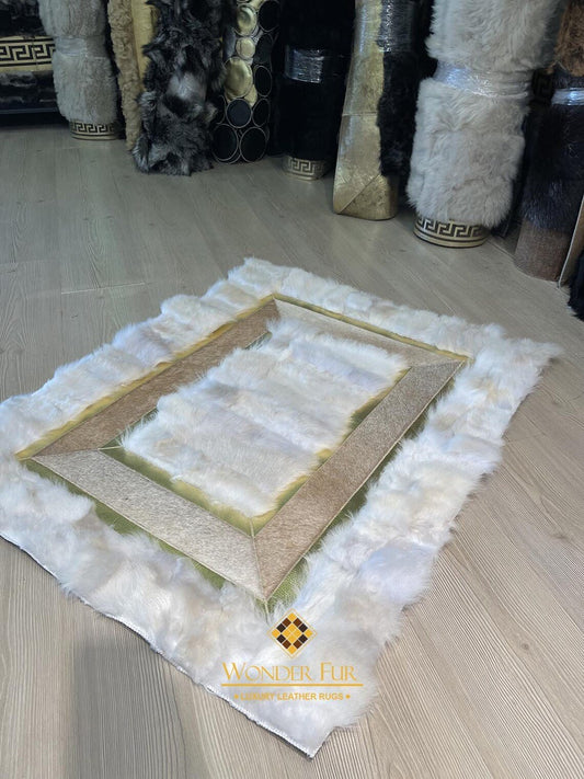 Handmade Soft Fluffy Real Sheepskin White Gold Patchwork Bedroom Rug