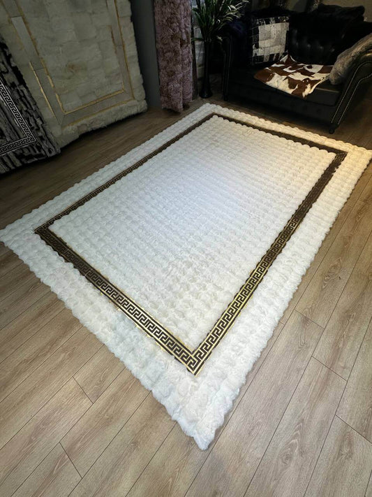 Elegant Extra Soft Handmade White And Gold Faux Fur Large Bedroom Rug