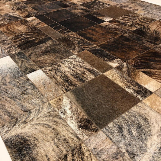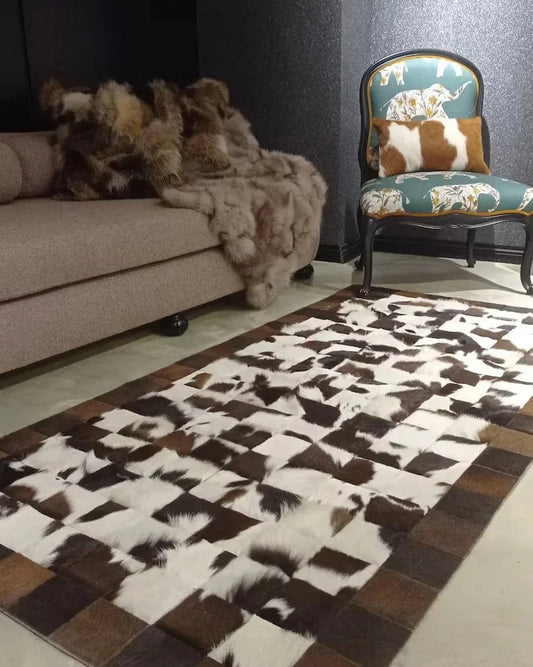 Brown and Black Cow Skin Carpet, Natural Cowhide Patchwork Area Rug, Perfect for Home Décor