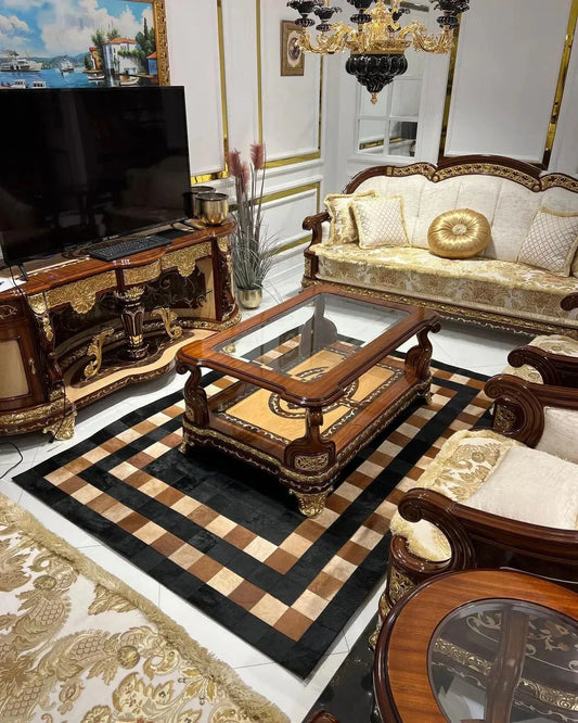Black Gold Luxury Cowhide Rug, Unique 100% Genuine Cowhide Patchwork Rug, Bedroom Rug