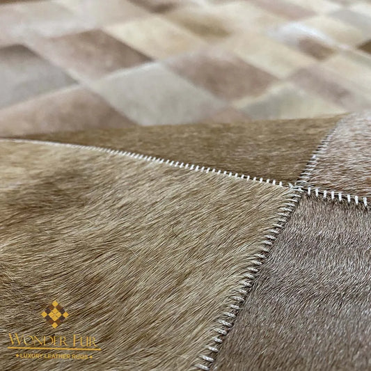 Genuine Cowhide Rug - Handmade Brown Patchwork Rug for Living Room