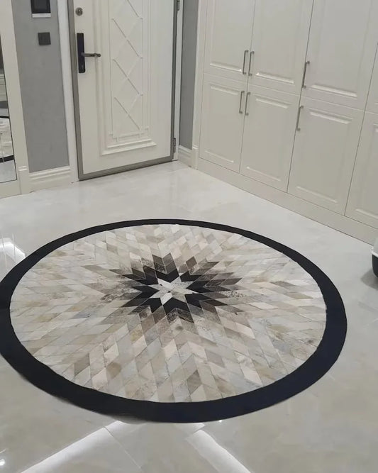 Handmade Symmetrical Cowhide Area Rug, 100% Natural Circular Scandinavian Rug