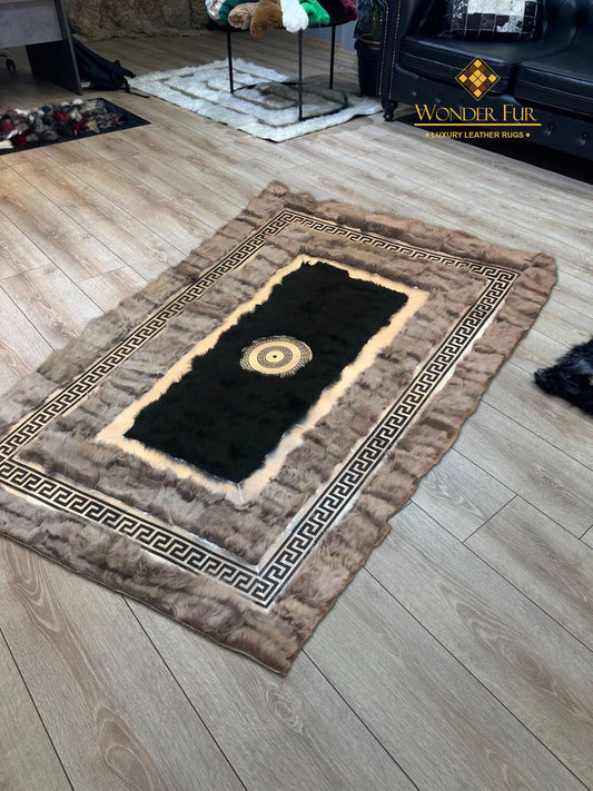 Genuine Decorative Brown Black Sheepskin Office Rug ,Soft Handmade Rug
