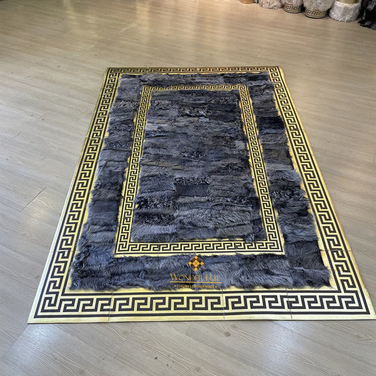 Handmade Natural Large Sheepskin Black Gold Living Room Rug , Soft Rug