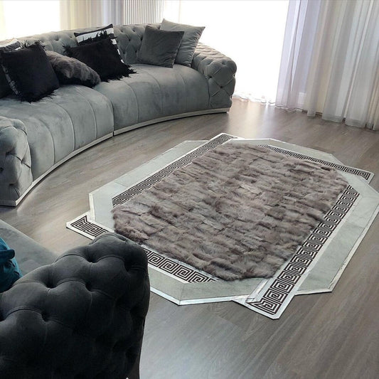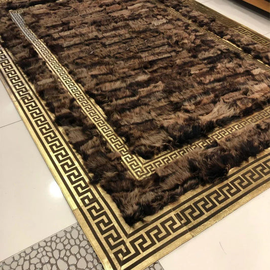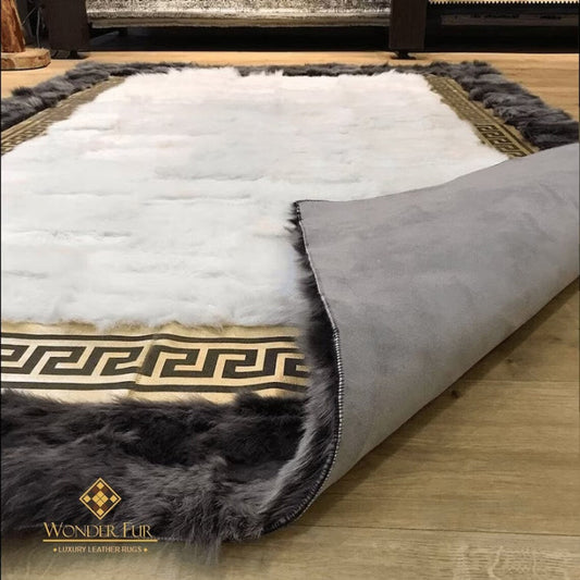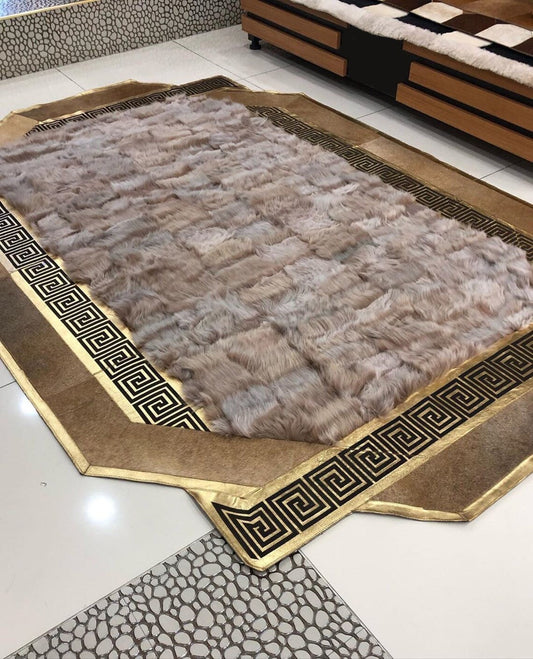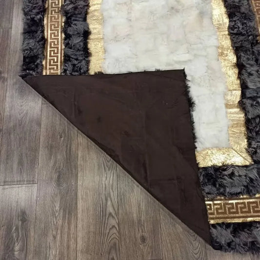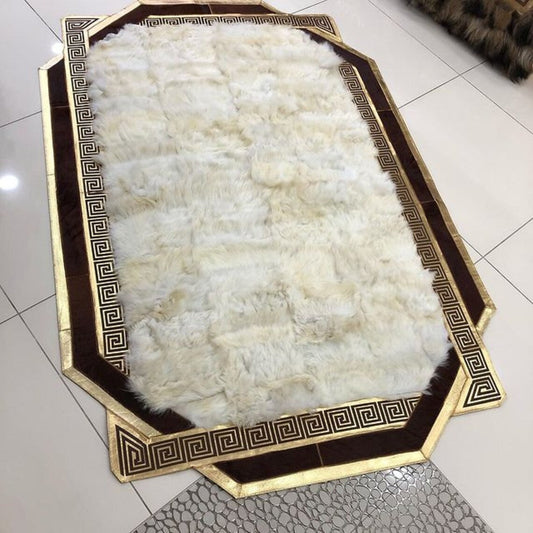 100% Natural Handmade Sheepskin Black Gold And White Living Room Rug