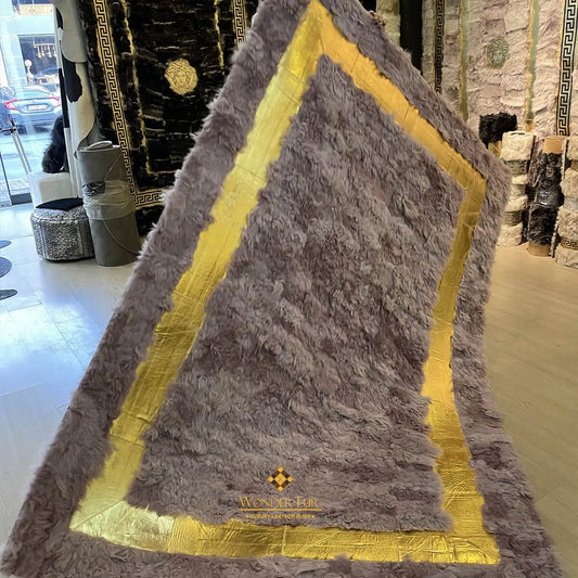 Handmade Custom Gray Sheepskin Rug with Gold Edges - Luxury Elegant Rug