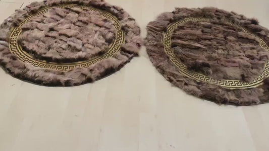 Handmade Sheepskin Rug - Soft Fluffy Gray & Gold Round Non Slip Rug