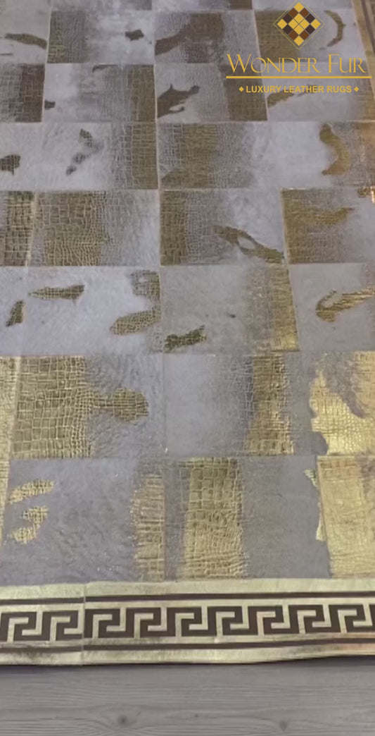 Sheepskin Leather Rug - Elegant Grey and Gold Area Rug for Home Decor