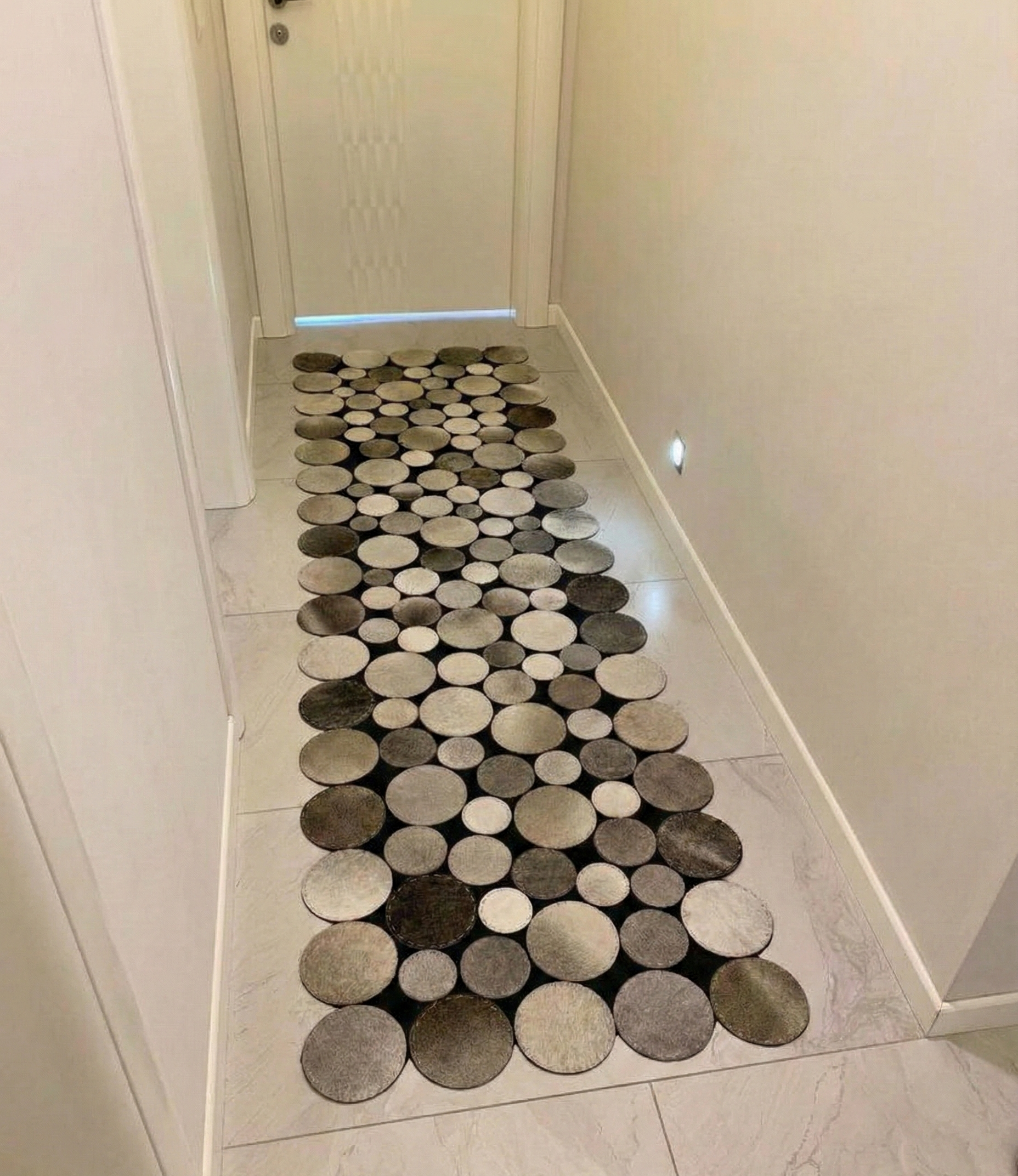 100% Genuine Leather Handmade Cowhide Runner Rug, Hallway Rug for Decor
