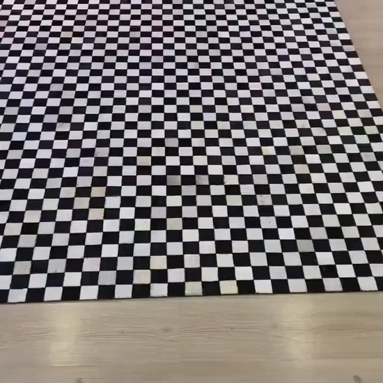Black and White Cowhide Patchwork Rug – 100% Natural Handmade Cowhide Area Rug