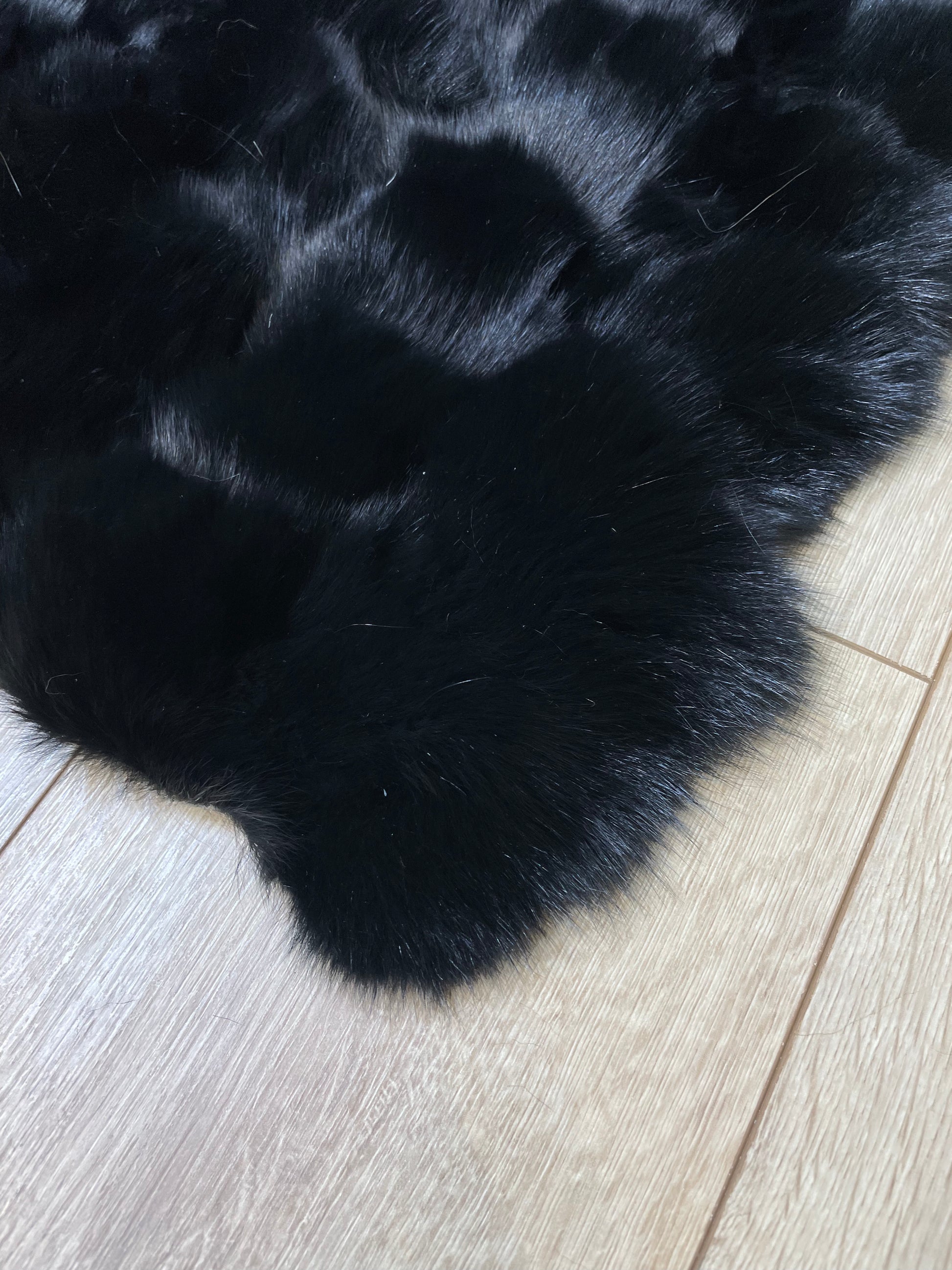 Make a bold and sophisticated statement with this luxury handmade black fox fur area rug. Crafted from genuine natural fox fur, it features long, silky fibers that create a rich, flowing texture designed for elite living spaces.