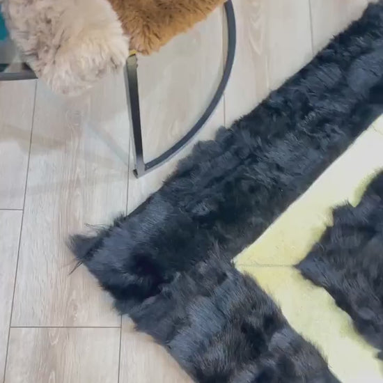 Elevate your entrance with our Elegant Black Gold Sheepskin Area Rug, meticulously handmade for sophistication and style. Crafted with natural sheepskin, this luxurious rug adds warmth and elegance to any space. Make a statement with timeless beauty and artisanal craftsmanship welcoming guests into your home.