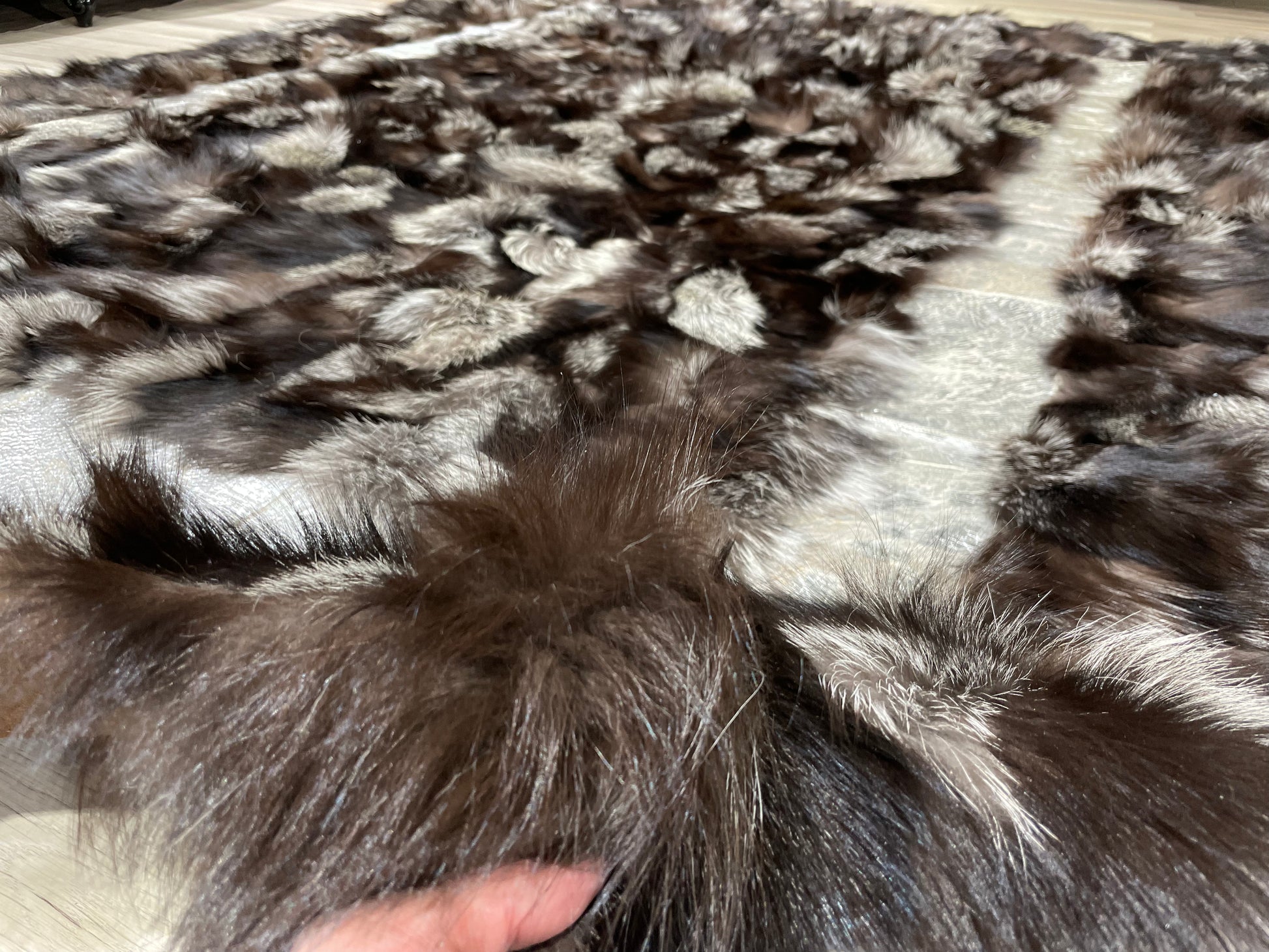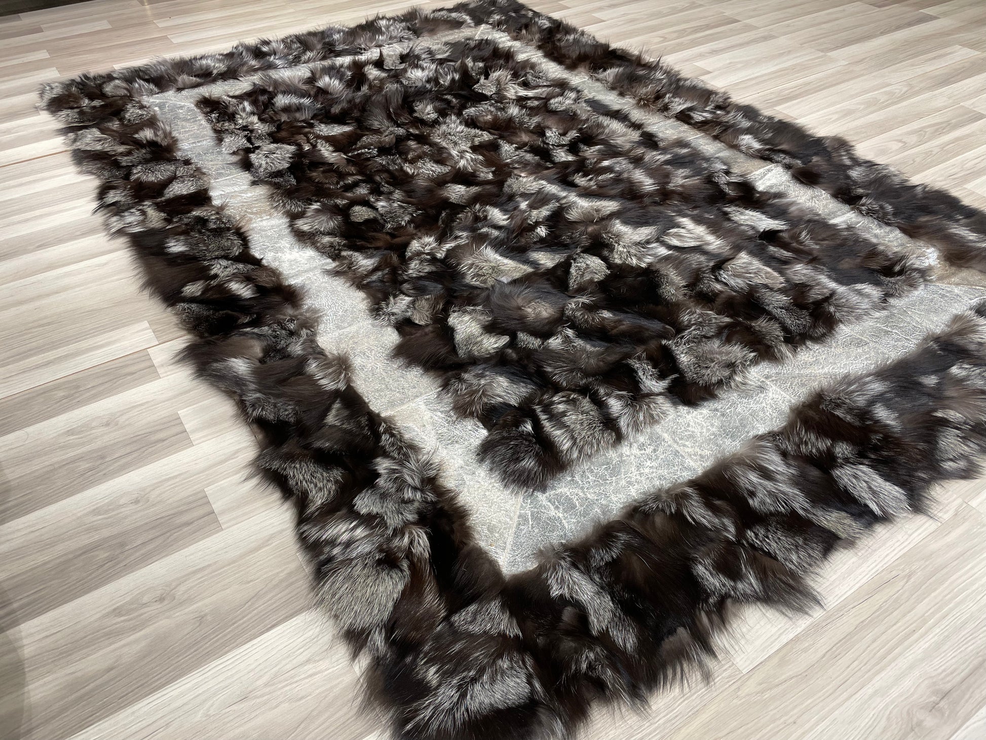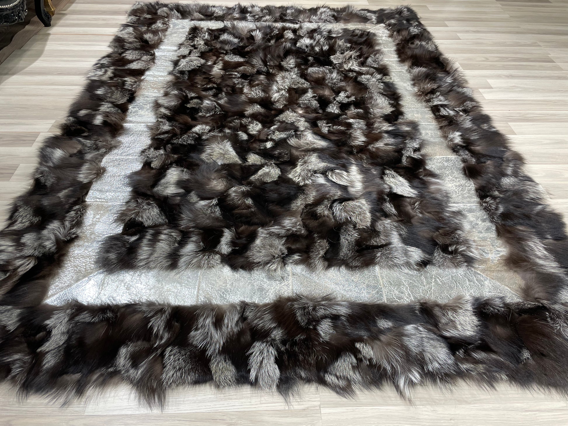 Luxury Handmade Black & Ivory Fox Fur Area Rug
