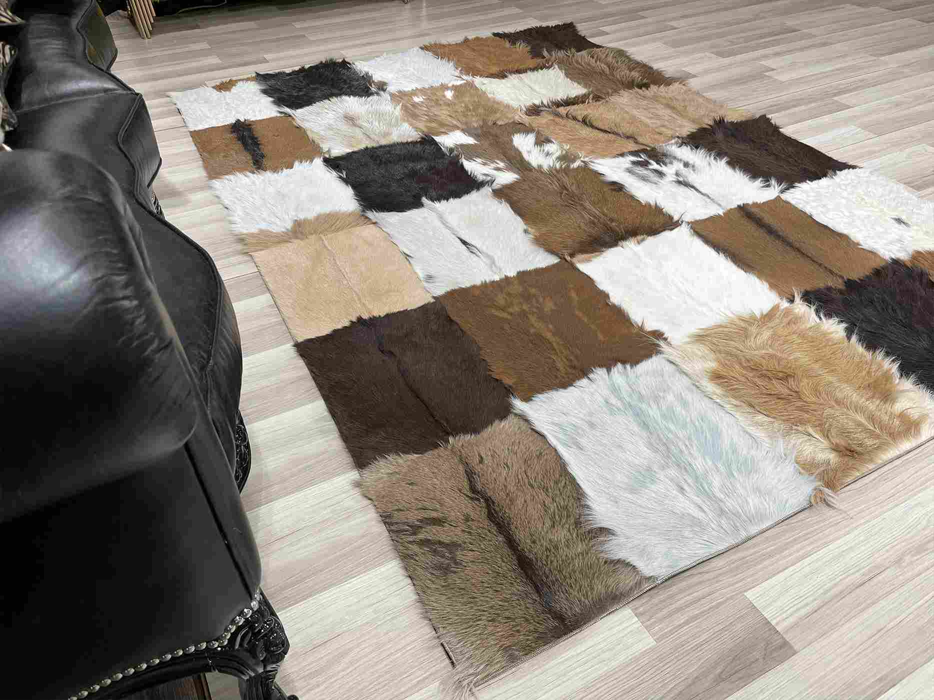 Natural Elegane Tricolor Genuine Goatskin Area Rug, Handmade Home Decor