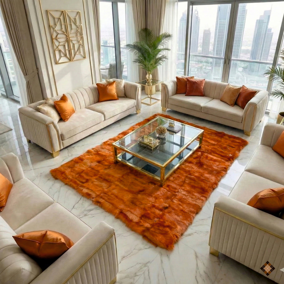 A rich burnt orange tone that instantly energizes your space while surrounding you in softness. This handmade genuine sheepskin rug brings warmth, confidence, and modern character underfoot. Custom-made to your preferred size, it’s the kind of piece that transforms a room without trying too hard.