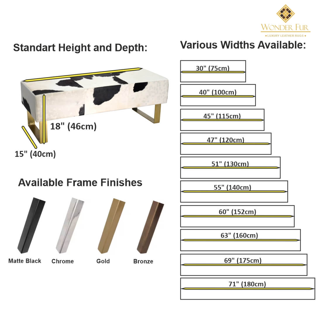 Custom Made Unique Design Genuine Cowhide Bench, High Quality Leather