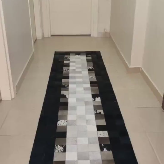 Luxury Hallway Runner Rug with Black Border, Natural Handmade Cowhide Rug