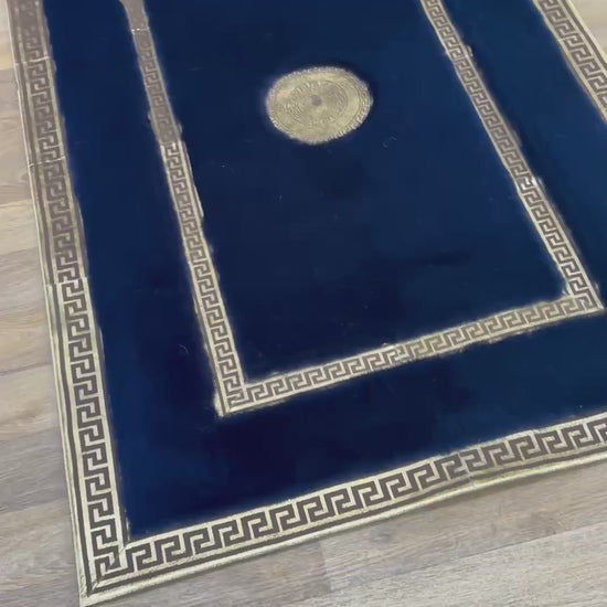 Handmade Navy Blue and Plush Area Rug | Soft Fluffy Shag Carpet