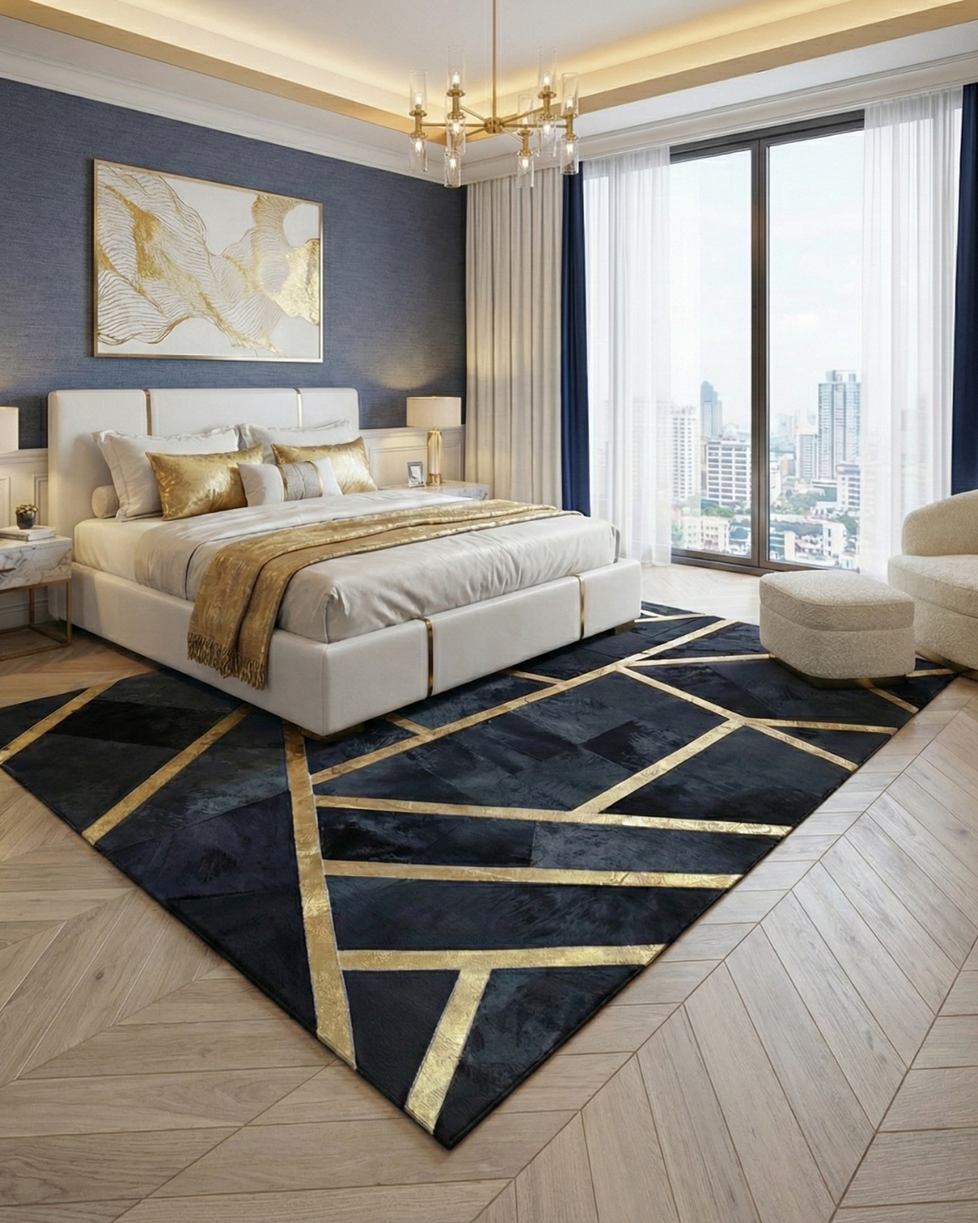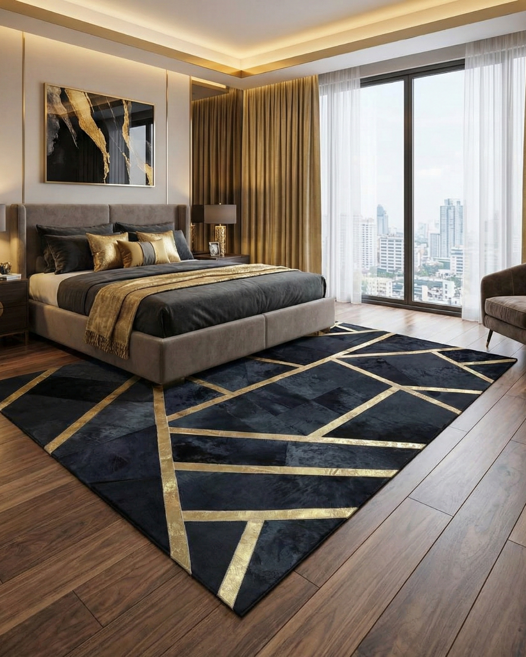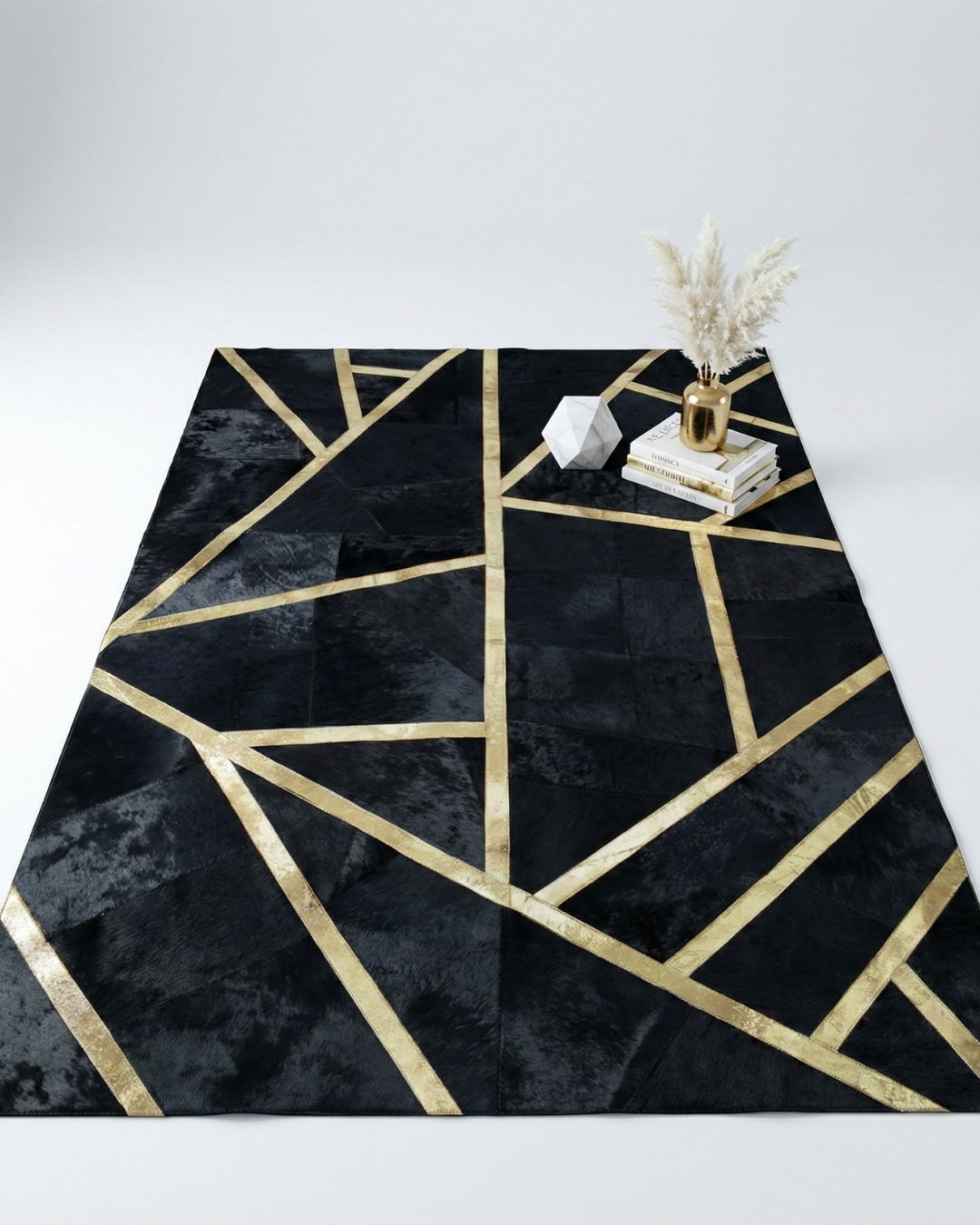 Luxuyr Custom Black and Gold Patchwork Rug - Large 10x12 Cowhide Rug