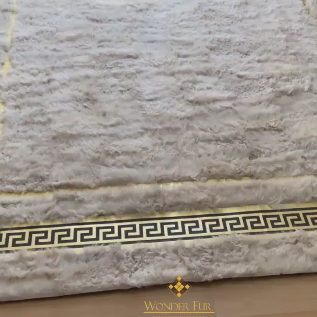 Ivory Sheepskin Area Rug with Gold Greek Key Border