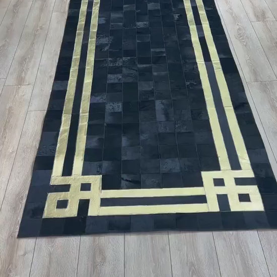 Luxury Black Gold Elegant Design 100% Genuine Handmade Runner Rug for Hallway