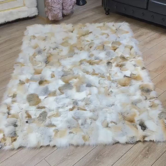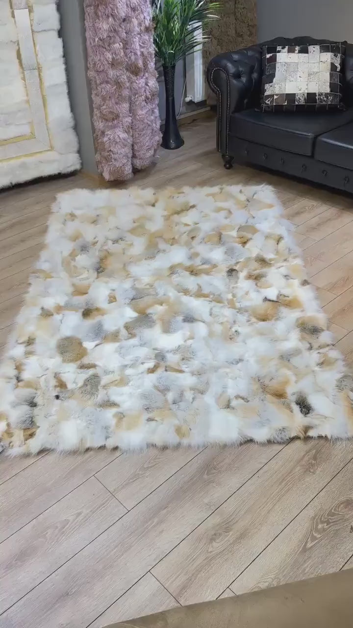 Luxury Golden Brown 100% Genuine Fox Fur Area Rug for Living Room