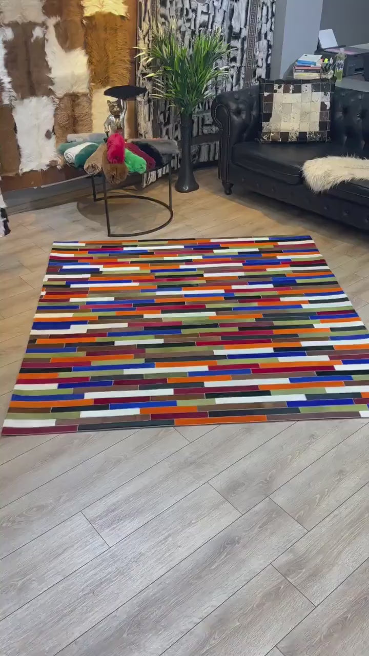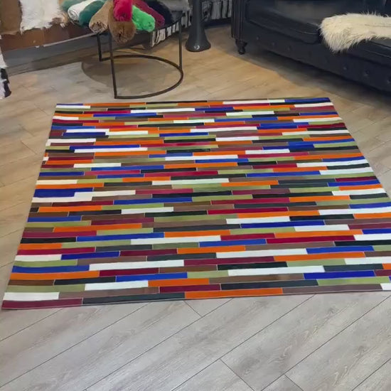 Multicolor Cowhide Patchwork Rug for Kids Room, Genuine Handmade Cowhide Area Rug, Modern Rug