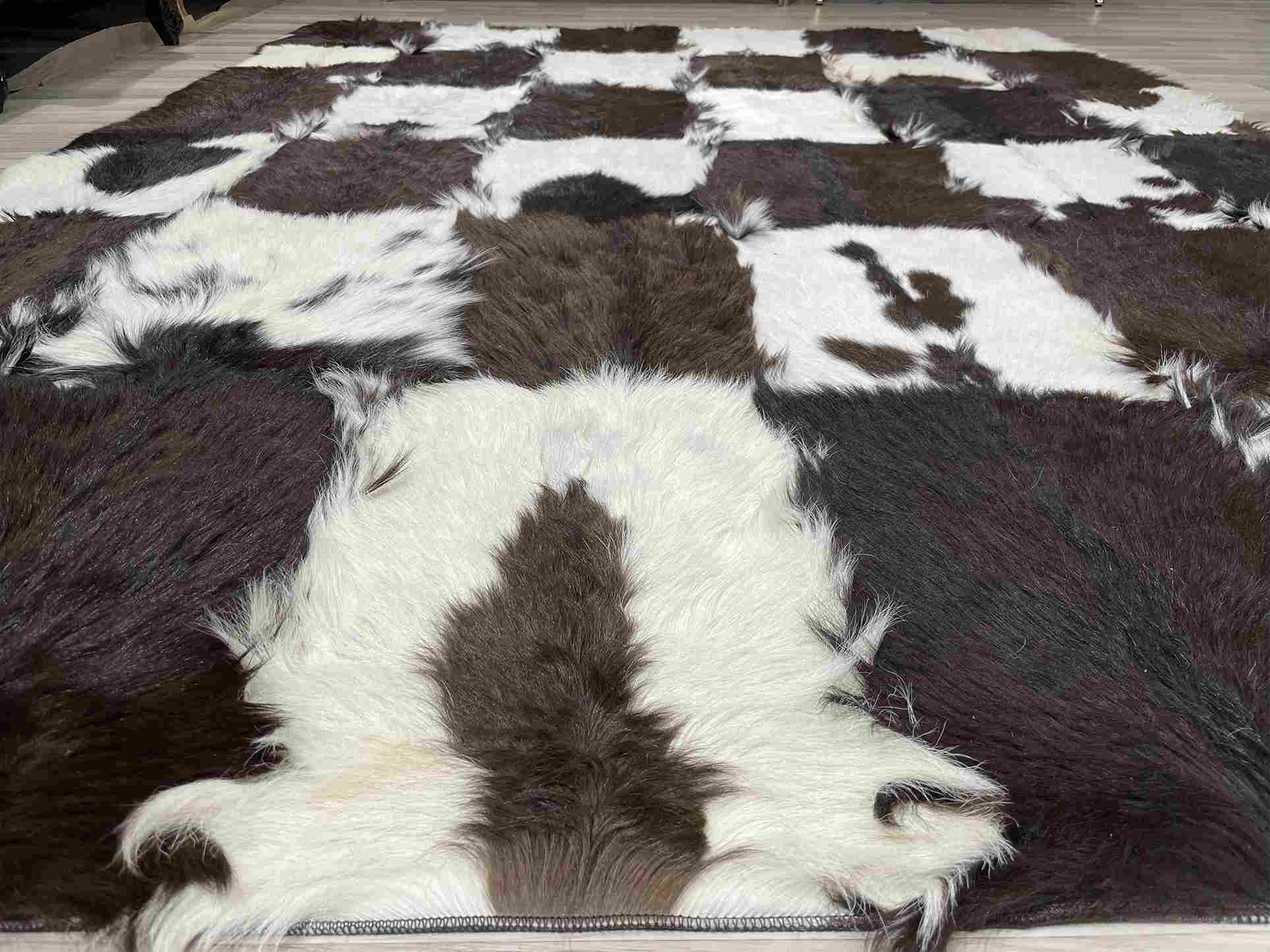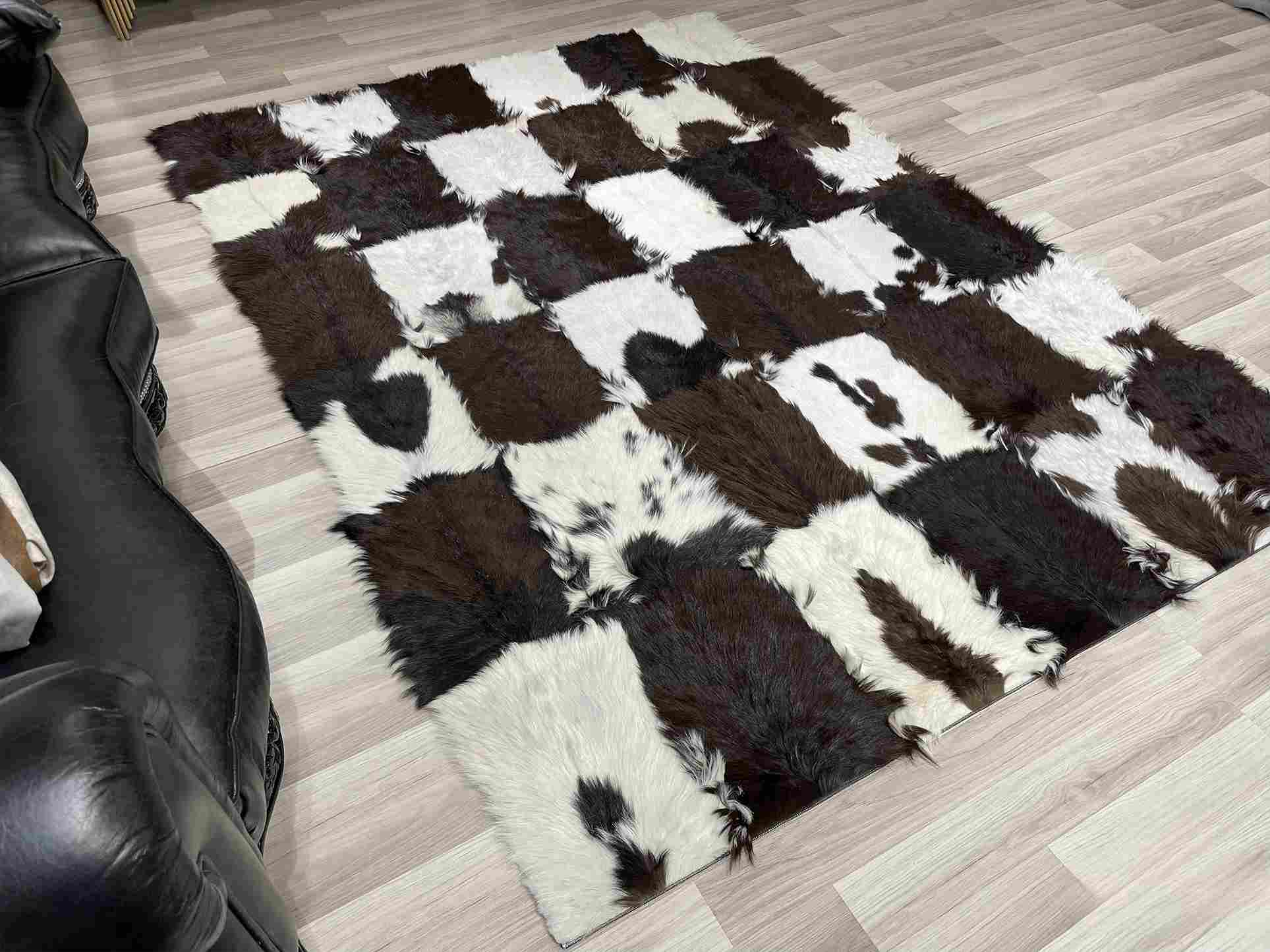 Brown and White Natural Goatskin Patchwork Rug for Living Room