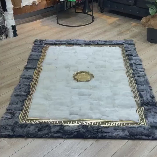 Unique Customizable Gray White Real Sheepskin Handmade Living Room Rug