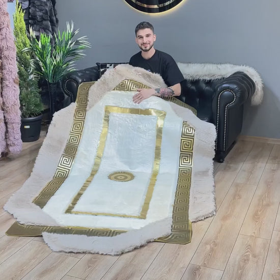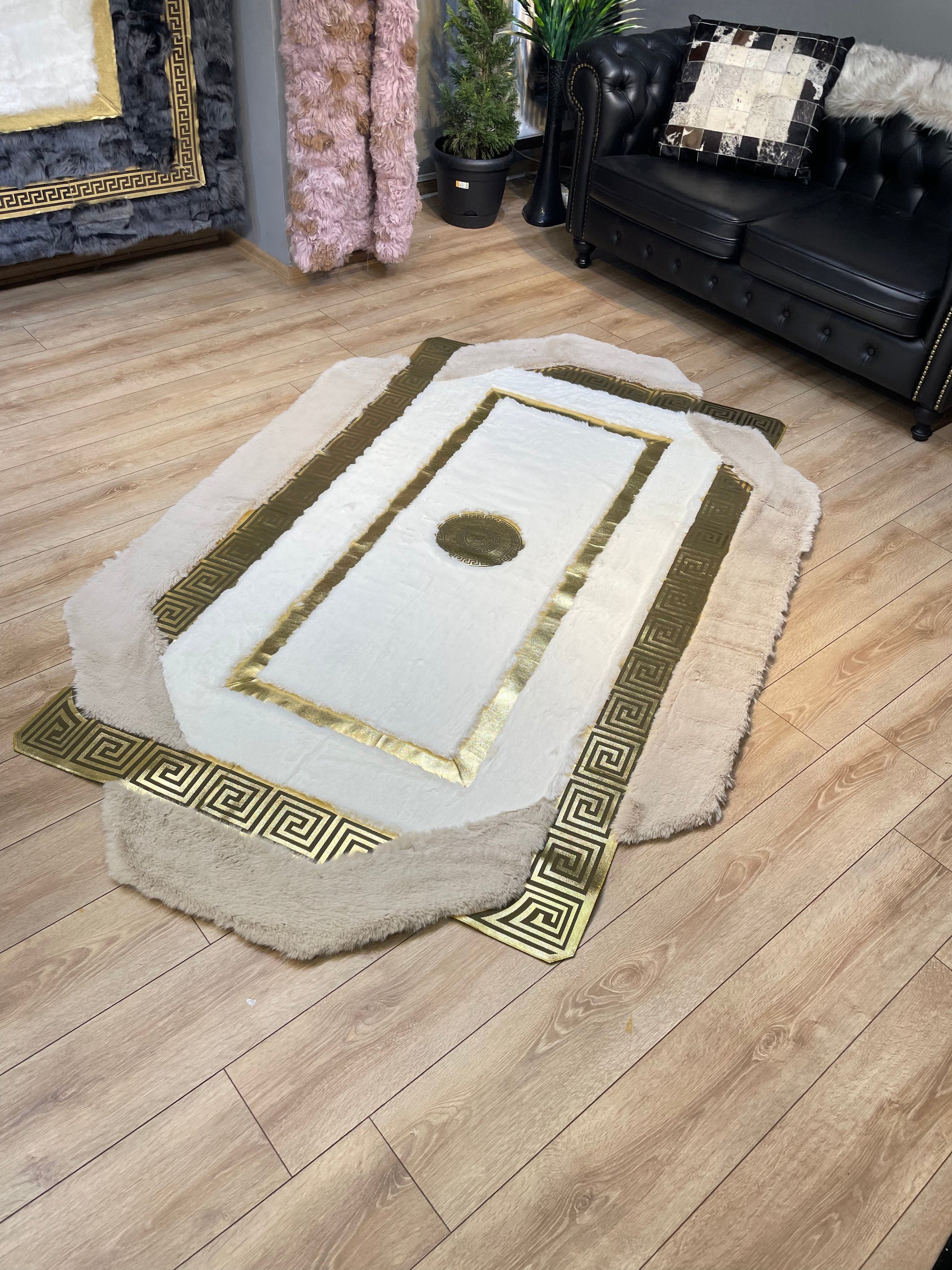 Unqieue Tricolor Faux Fur Area Rug, Handmade Modern Design Plush Non Slip Rug
